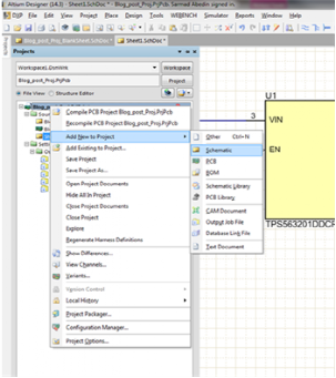 步骤5:在Projects(项目)窗口中右键单击该项目名称,然后单击Add New to Project(添加到新项目);然后单击Schematic(原理图)(图5)。系统将提供一个新原理图表格,以便将组件复制到该表格中。