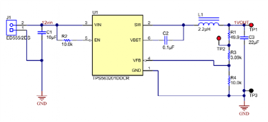 步骤1:在Altium中建立一个简单的降压转换器原理图(图1)。