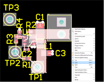 复制后,Altium会要求提供一个参考点;点击一个特定组件。