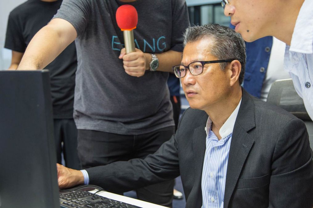 (财政司司长观看亿航企业宣传片)