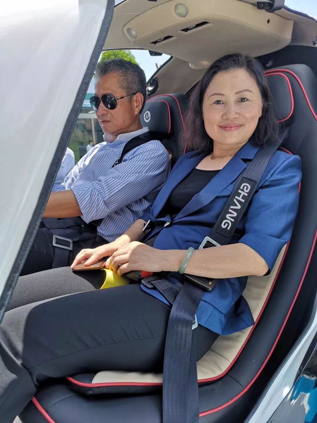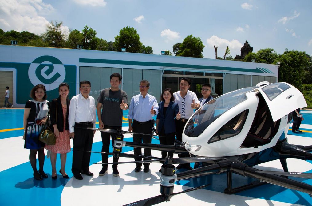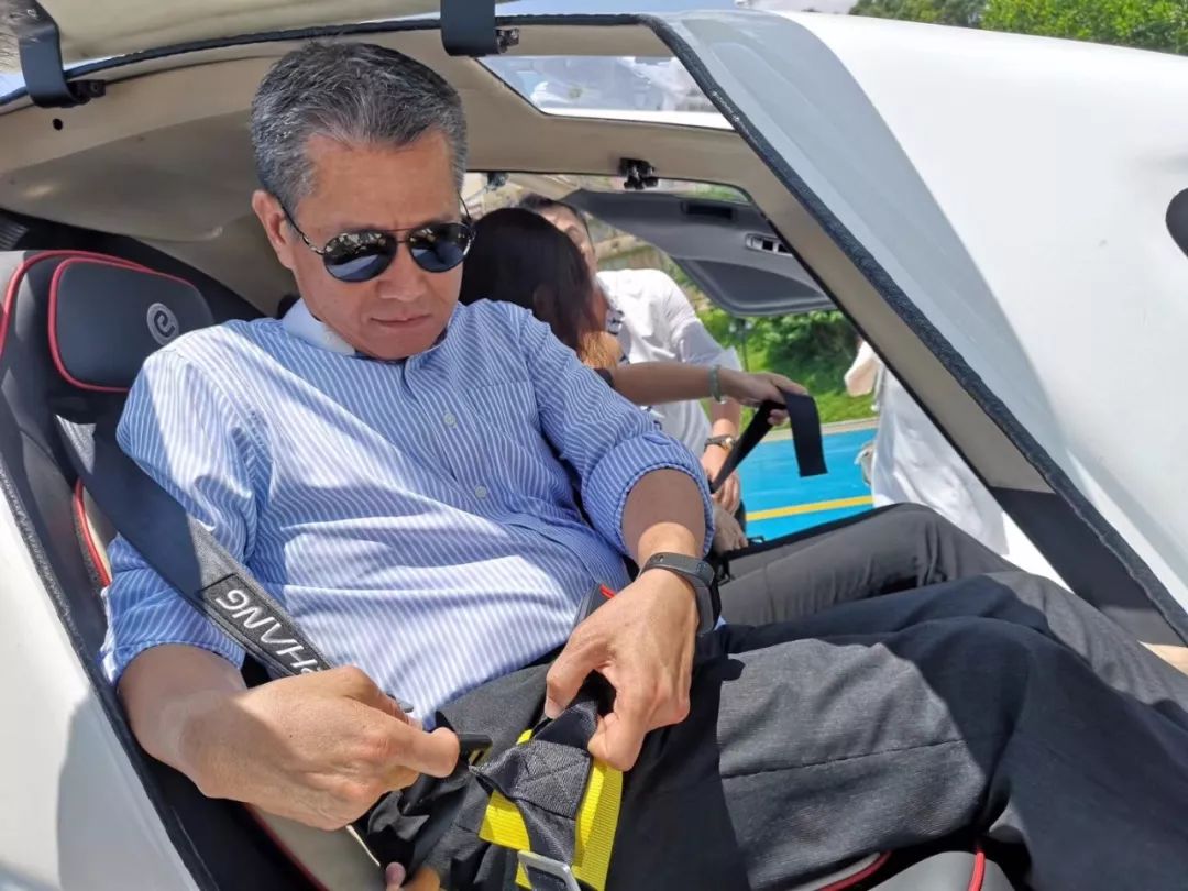 原本行程最后的一个环节是观看亿航AAV(亿航自动驾驶飞行器AAV简称)常态化飞行演示,但是香港财政司司长陈茂波听闻在此之前很多政要已经上座体验过一番,突然改变主意,主动要求亲自坐上去体验这台全自动驾驶飞行器的魅力。于是由原来的“观看”临时改成了“试乘”,而且这一次还是双座版的亿航AAV,财政司司长陈茂波与市政府副秘书长周玉梅一同乘坐。