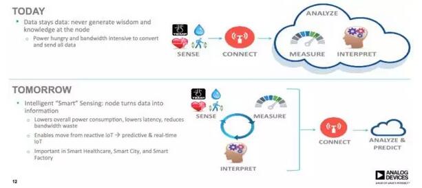 据悉, ADI内部有若干的产品开发,已经将一部分智能功能挪到传感器端来,传感器会将收集到的数据先进行预处理,然后输出处理后的数据,数据量变小变精后,后台云数据处理压力也得到缓解,减小了处理延时;同时,整个系统的功耗也因此得到了降低。